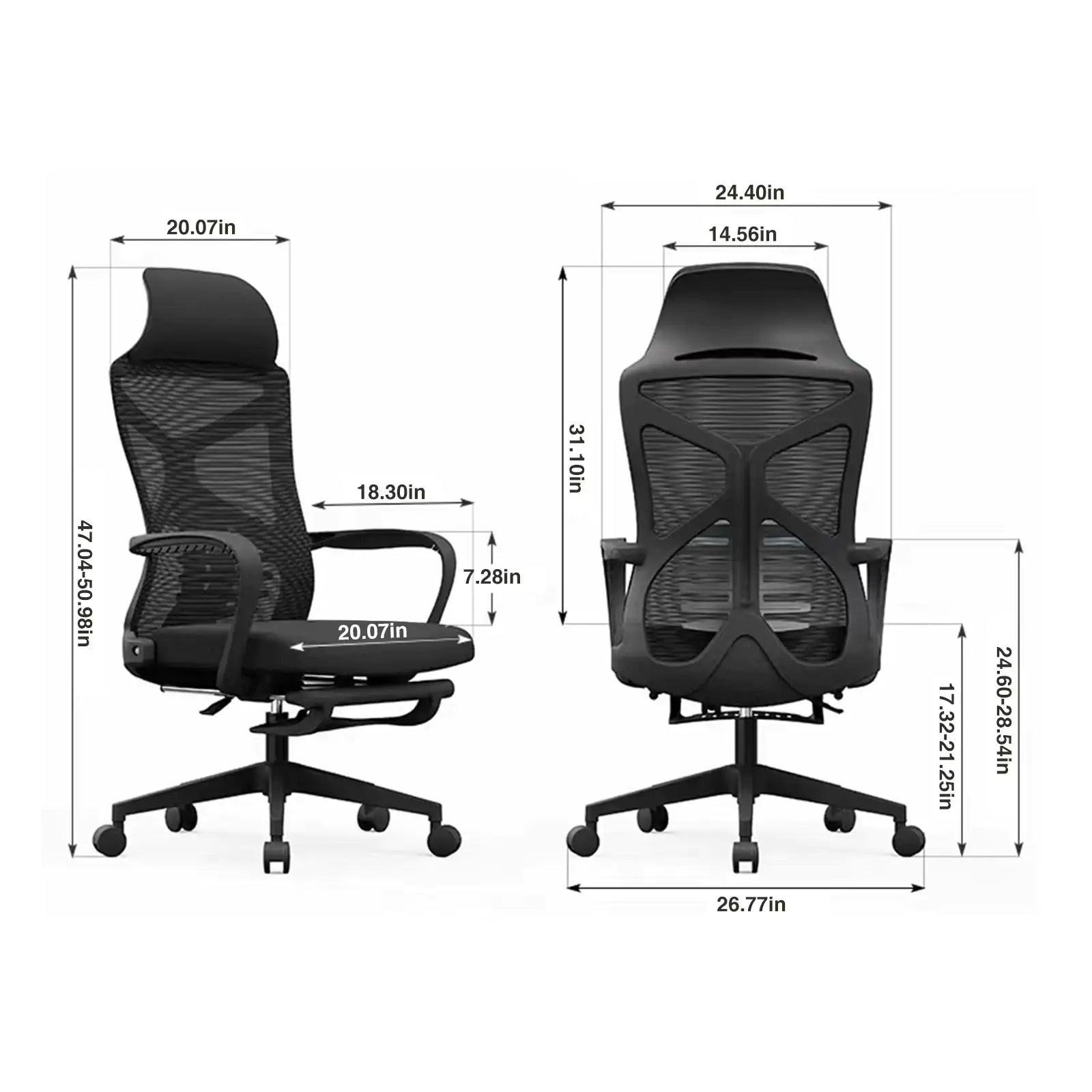 Breathable Mesh Seat – Spacious, breathable seat supports up to 290 lbs, with a reclining function (95°–150°) for relaxation.